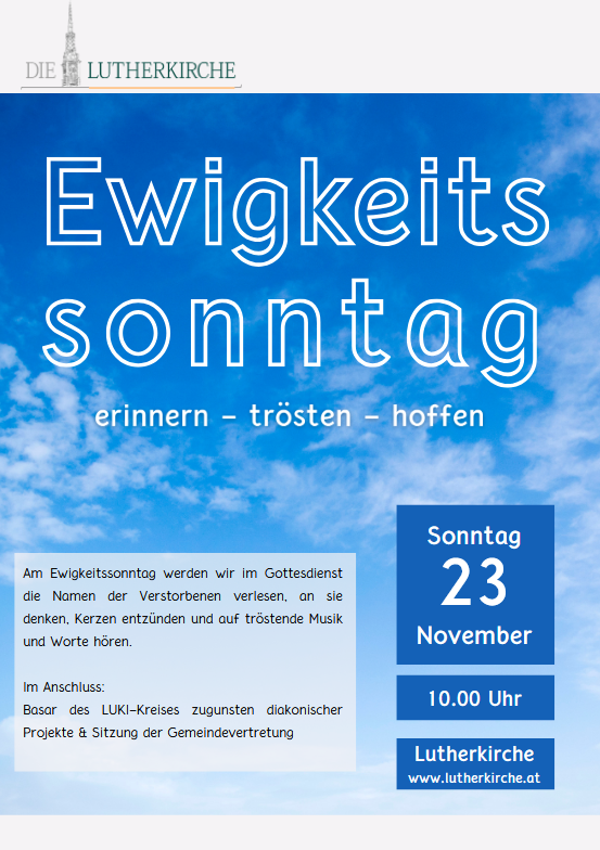 Drittletzter Sonntag des Kirchenjahres | P Helene Lechner, P Christopher Türke | mit Abendmahl | KG: L Birgit Steidl |